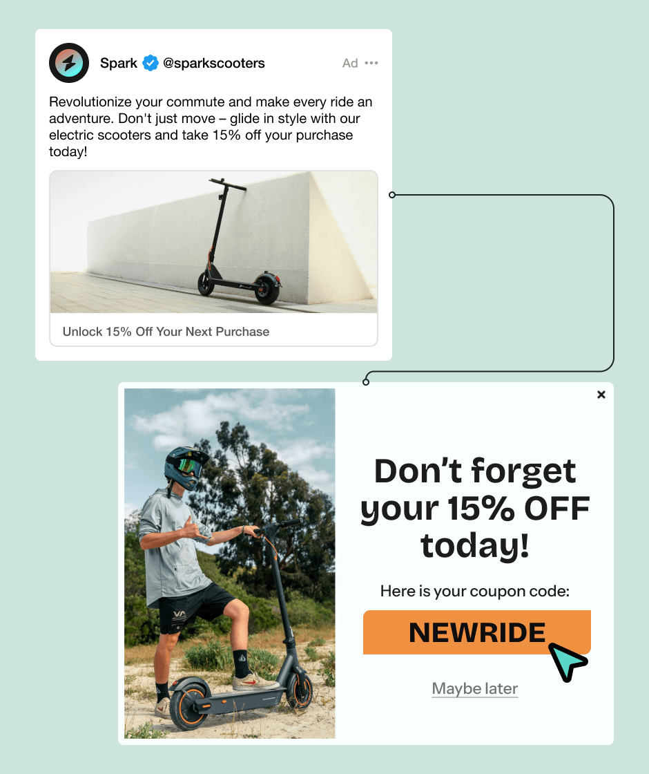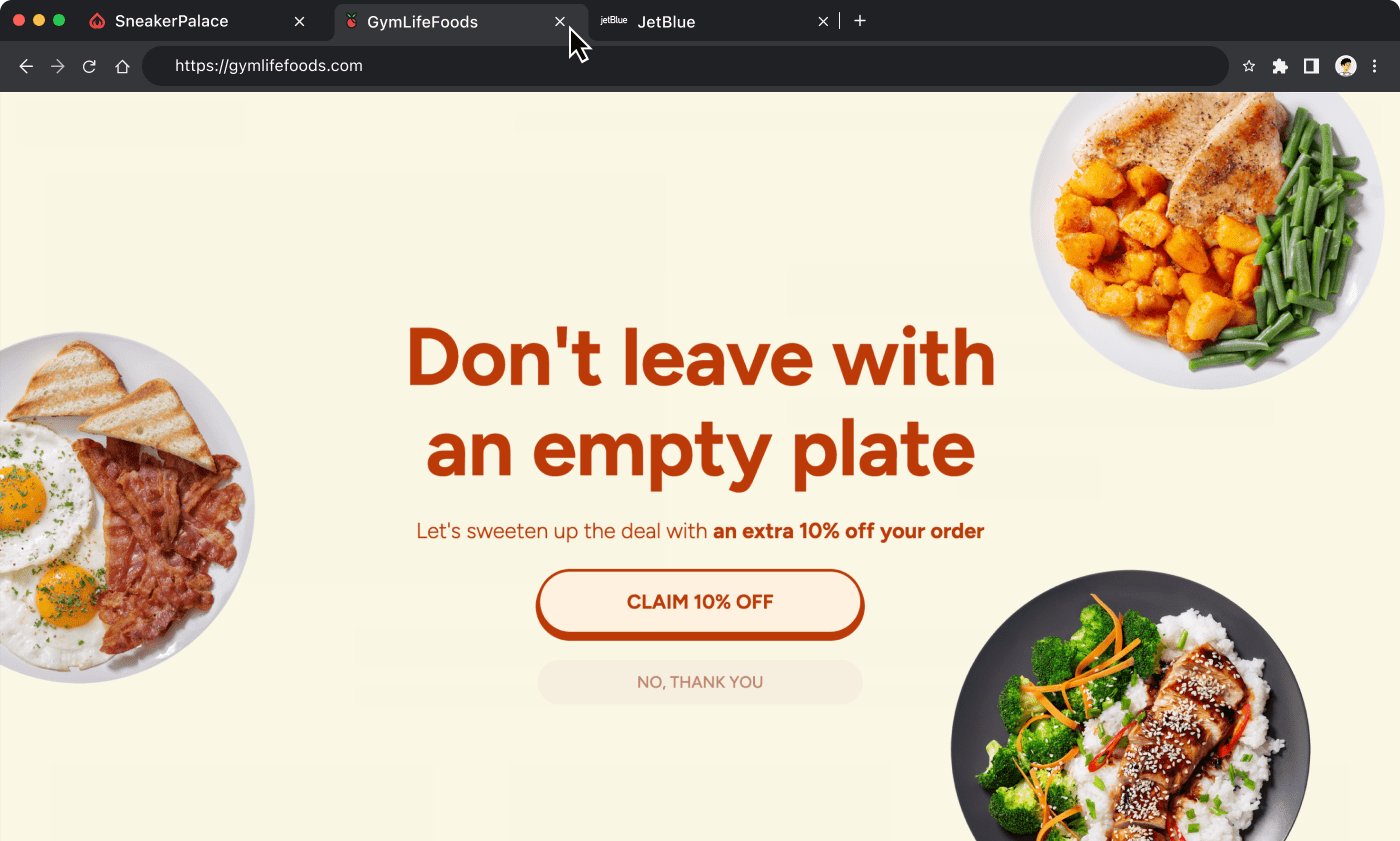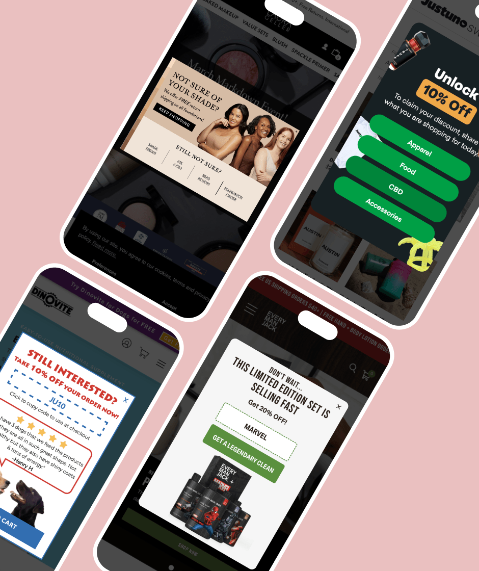 Cart abandonment is often caused by roadblocks like unexpected shipping costs, high order totals, and low-intent browsers. Effective exit offers can remove these barriers by engaging shoppers at just the right moment with an offer to solve their pain points. Run A/B tests to figure out where and why shoppers are abandoning their carts, from there you can create a targeted offer that’s sure to boost sales.
