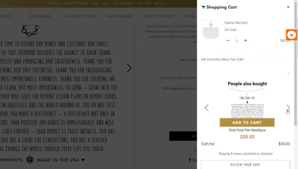 One of the best features of Commerce AI recommendations is that they appear native to your site design, creating a stylish, seamless aspect of the checkout process.