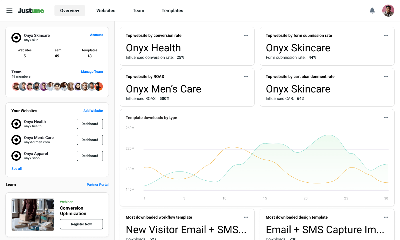 Configure your Justuno account to fit your needs. Unlock the power of Justuno’s conversion automation platform with a dashboard designed for efficiency and large-scale organizations.