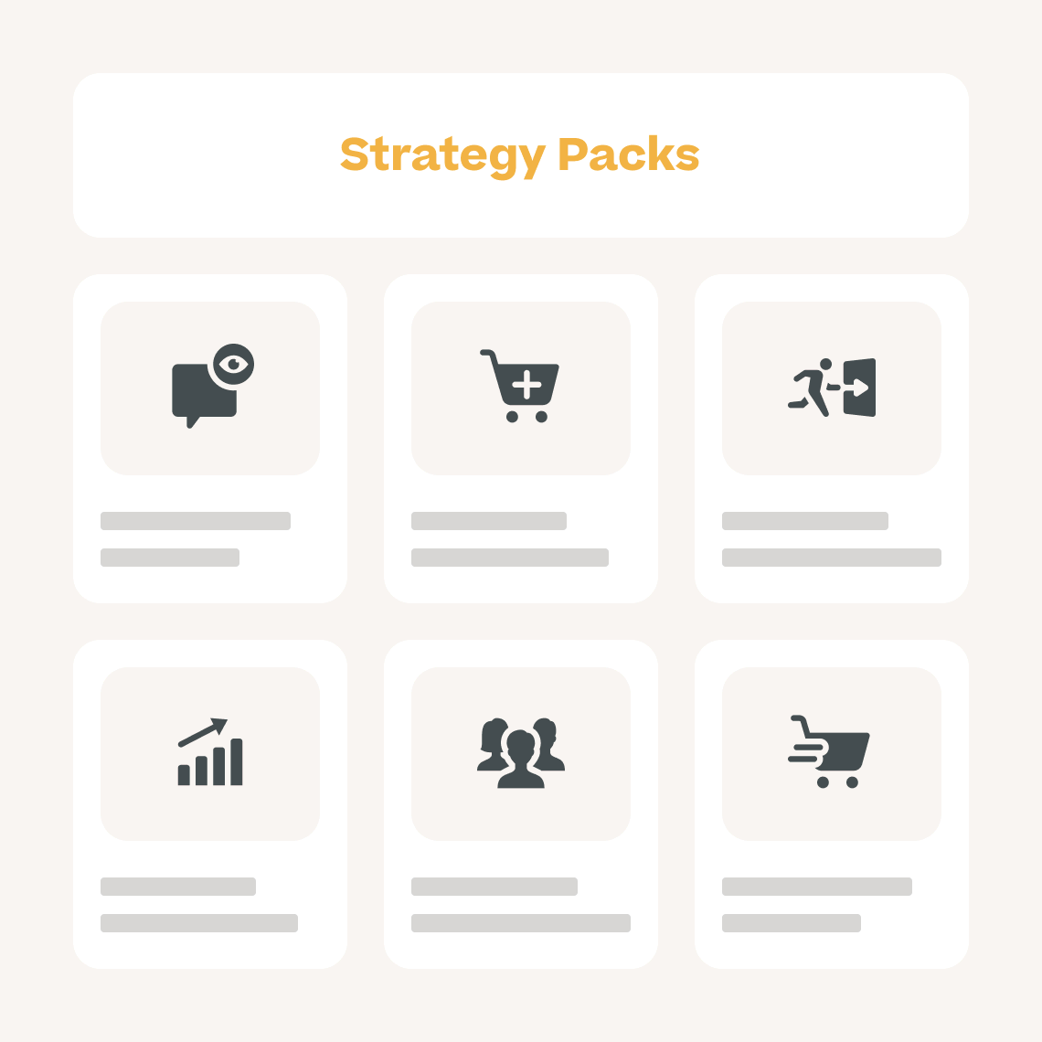 This page includes strategy packs based on client goals that can be accomplished using Justuno for onsite messaging and CRO. Choose between a breakdown of monthly deliverables or quarterly campaign suggestions for granular or high-level account management.