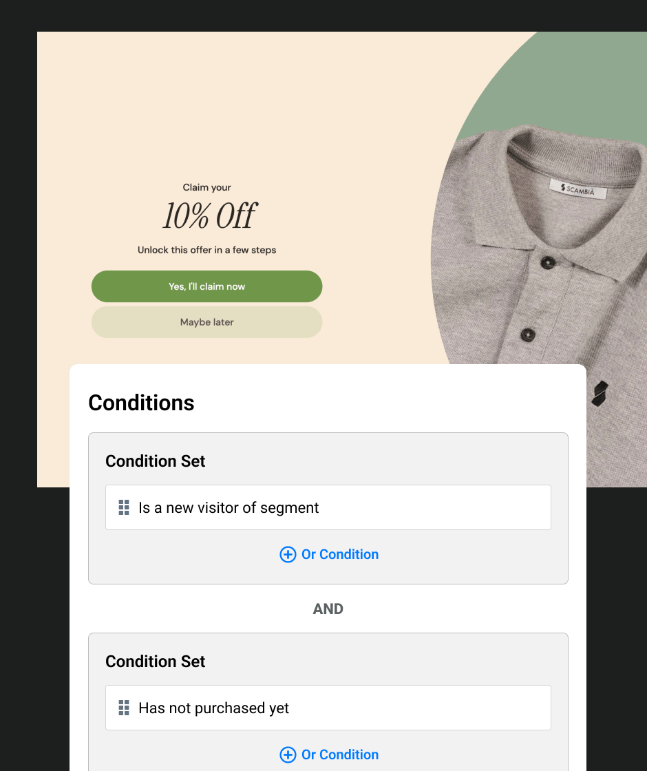 Zero and first-party data is more important than ever! Collect additional data points within your lead captures and onsite messaging through both additional and hidden fields. Not to mention launch quizzes to help personalize everything from future onsite promotions to email & SMS automation.