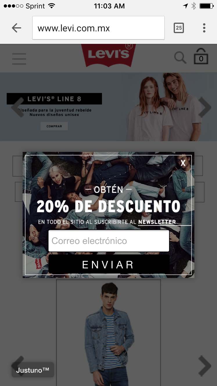 Here’s a great example from one of our clients, Levis Mexico, that appears to new users on mobile after they’ve been on the site for a short time.