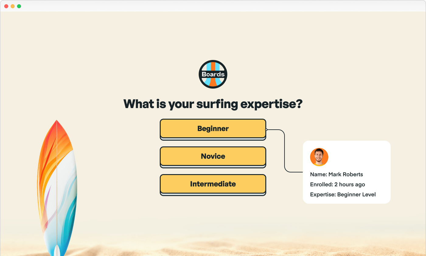 Custom properties allow you to ask any kind of question and then use the visitor’s answer for re-targeting later on. Create dynamic segments based on quiz responses to trigger personalized messages on every subsequent visit or drive same-session conversions.