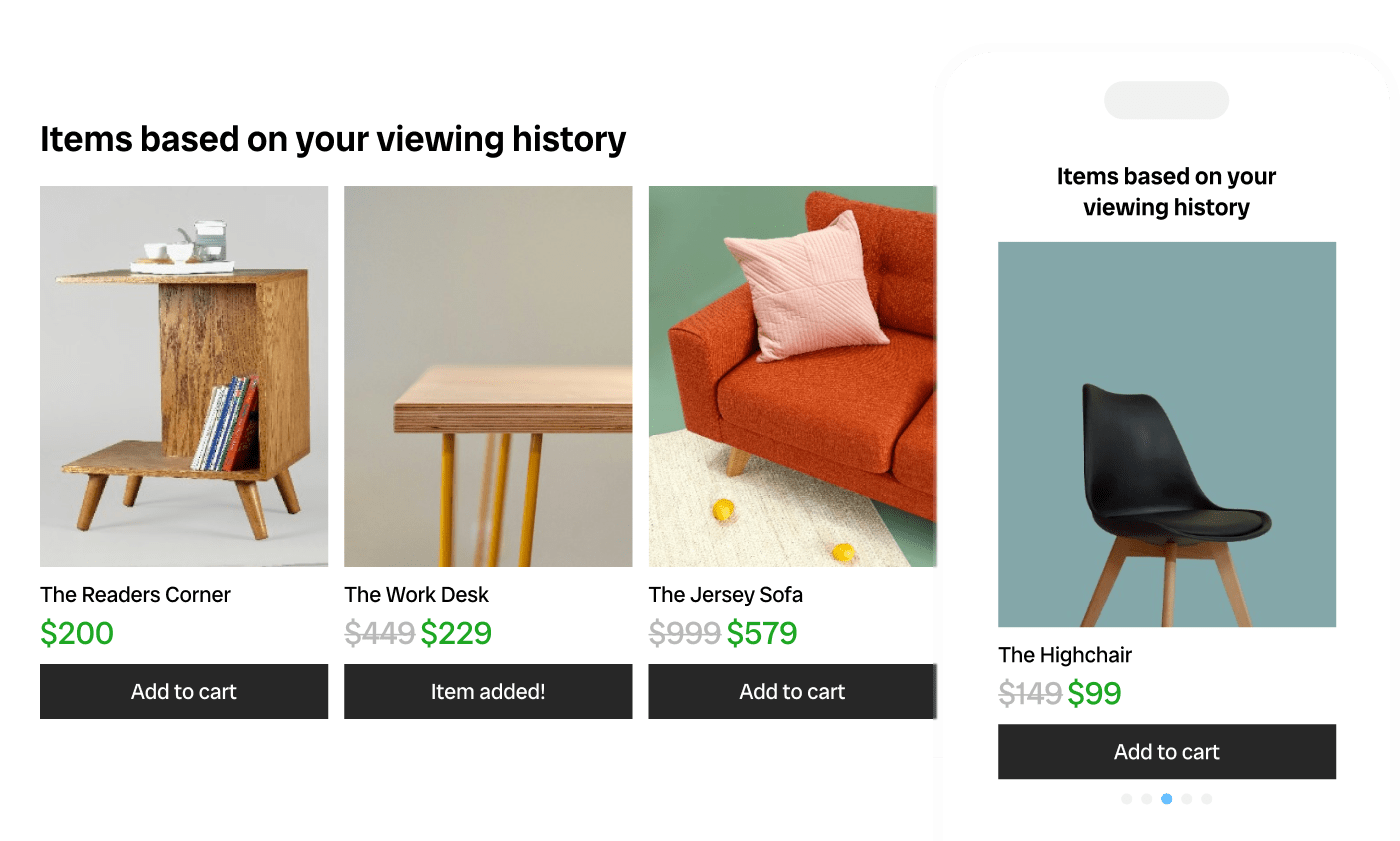 Product recommendations should span the buyer journey–encouraging visitors through the shopping process and engaging them at critical touchpoints. As they learn more about your customers they improve their recommendations with profile property targeting and segmentation strategies.