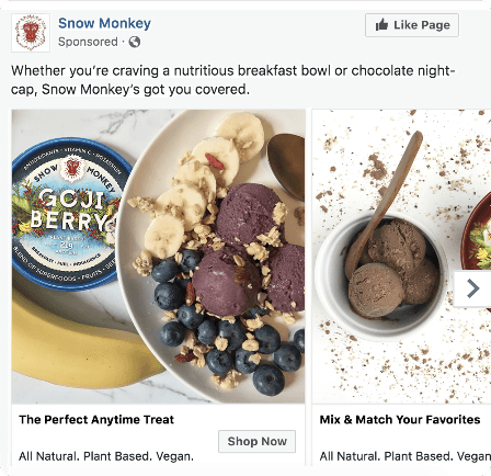 With Snow Monkey’s tempting product photography and bright, colorful brand aesthetic, the visual aspect of Facebook and Instagram made them naturally high-converting channels.