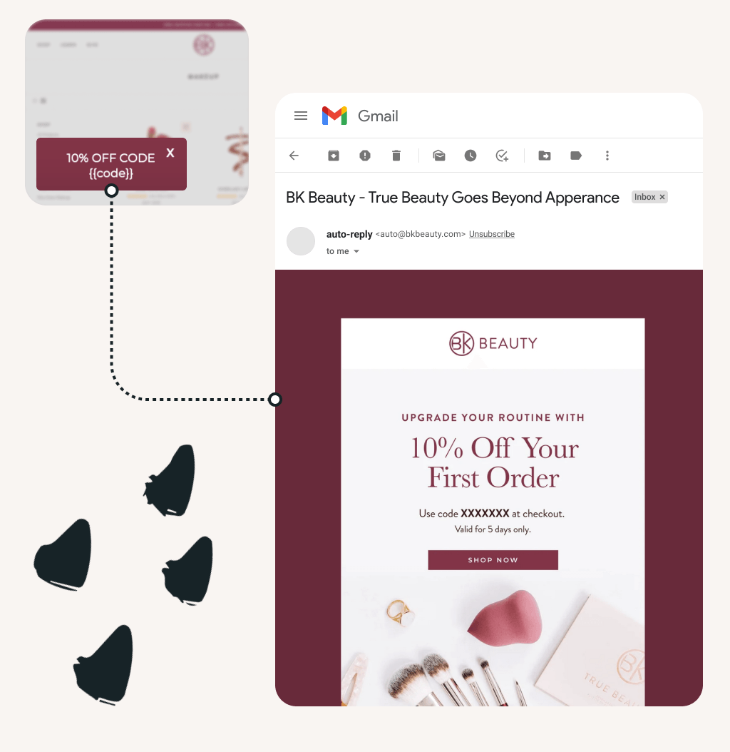 But Fuel Made wanted to make it even easier for BK Beauty subscribers to use the discount, so they added a tab featuring the discount code the visitor qualified for based on their engagement with the pop-up.
