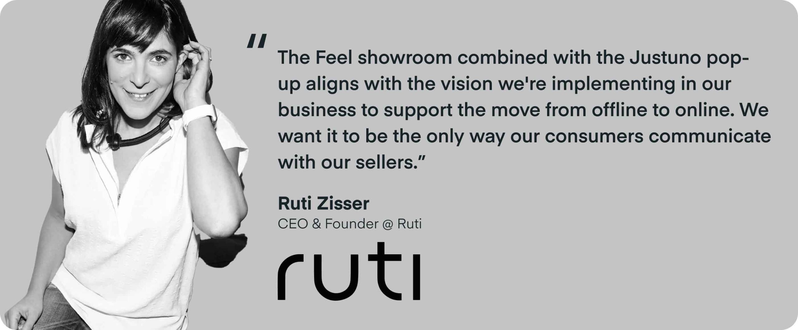 Using Feel’s showroom, Ruti has been able to convert 35% of shoppers who enter the showroom into customers, compared to the average 1-3% conversion rate of most e-commerce sites. This massive increase is a testament to the power that harnessing human connection can have when it comes to high-consideration items and, ultimately, providing value that consumers are looking for in the e-commerce world.