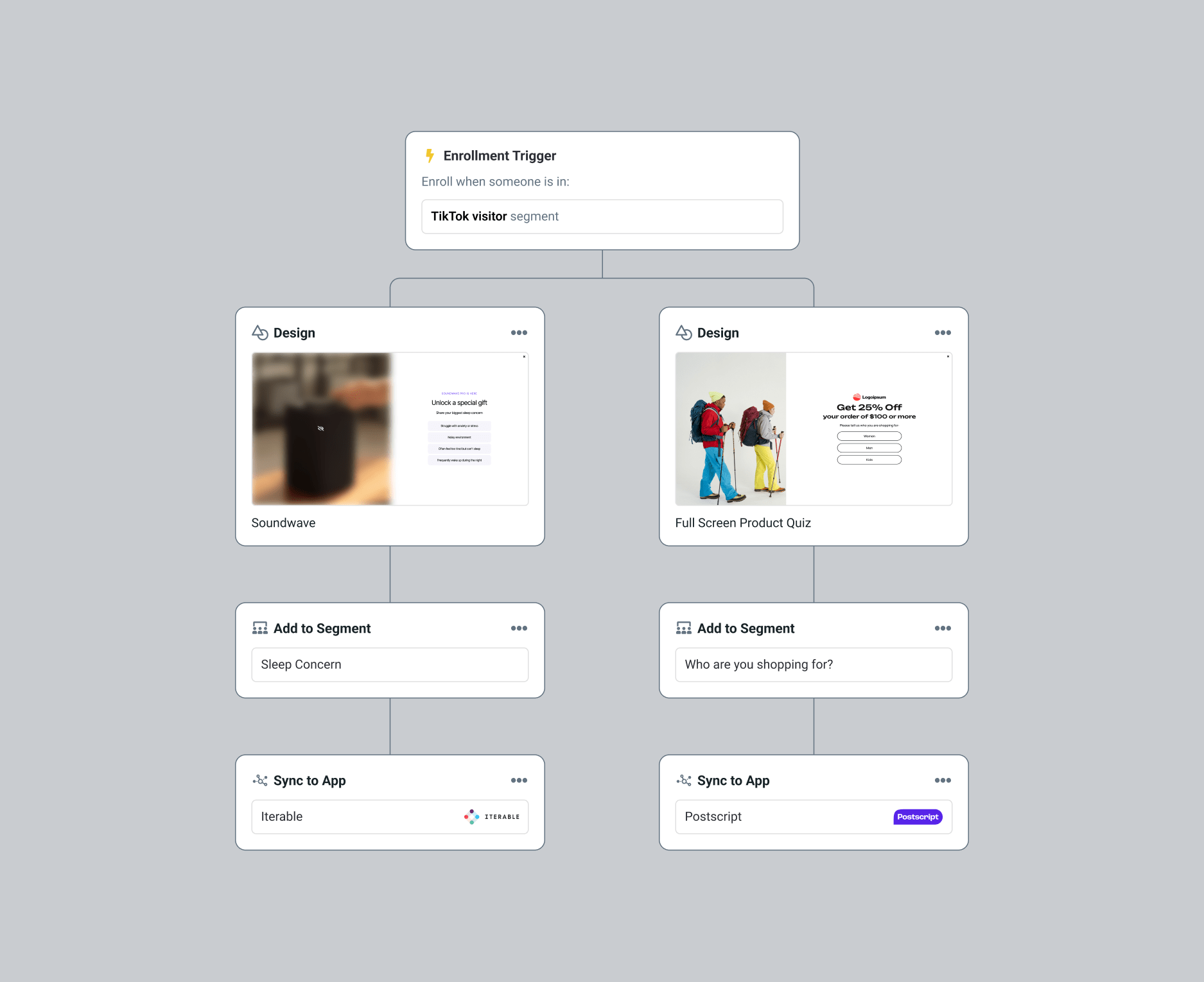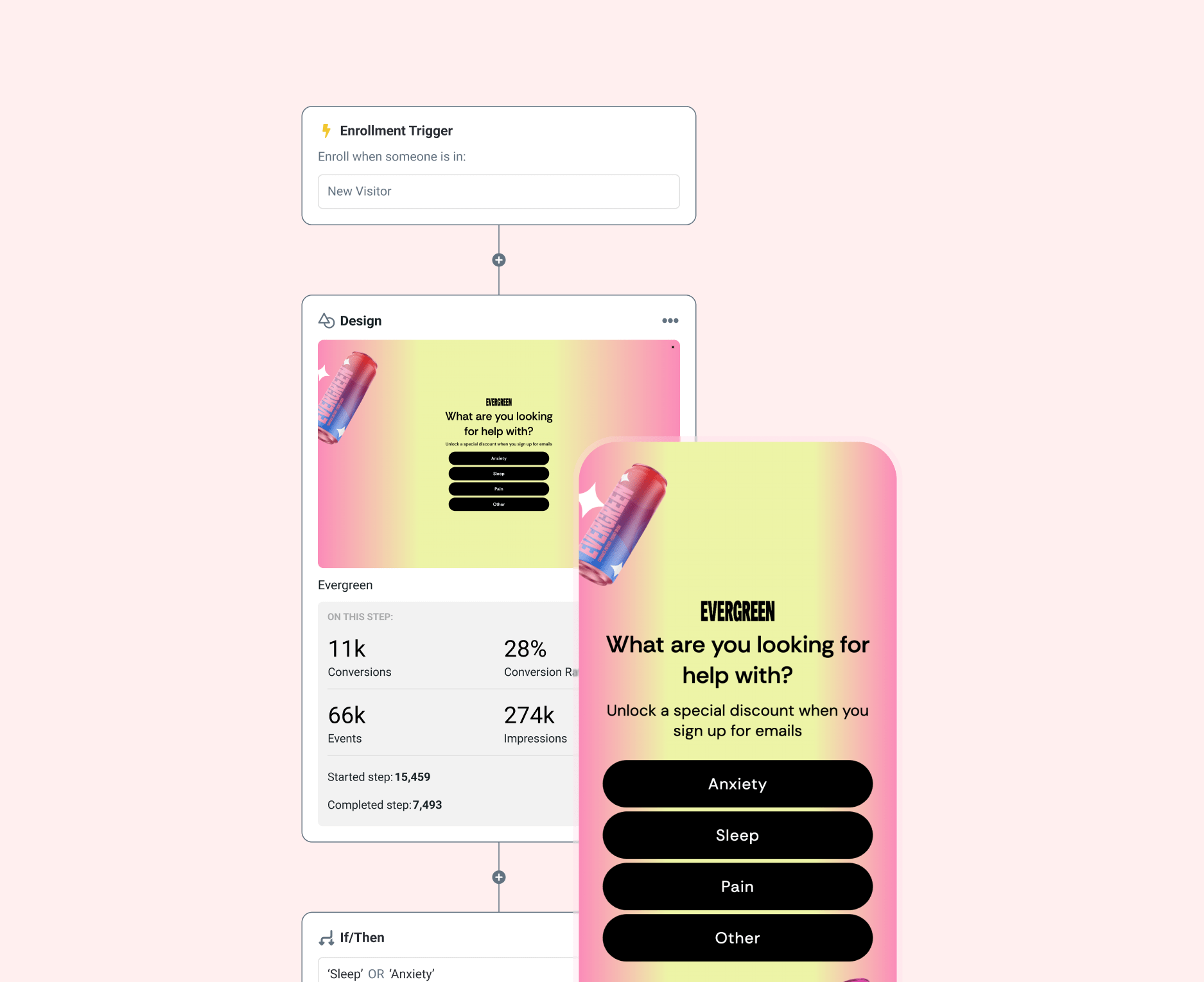 Grow your lists and drive more sales by setting up automations that trigger personalized messaging based on website behavior with our workflow builder.