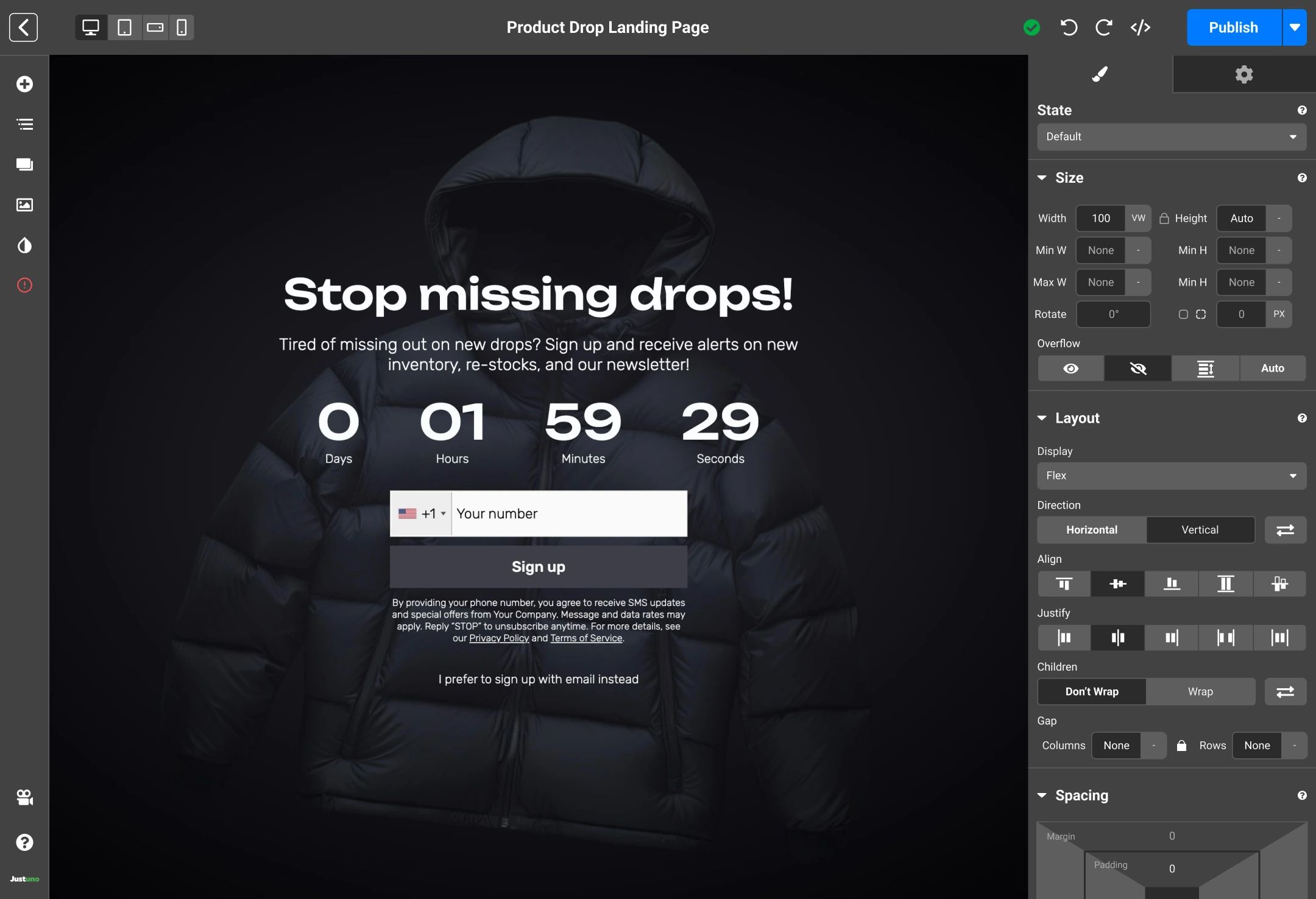 Flexibility Have complete control of your content, with access to hundreds of CSS properties in a no-code builder.