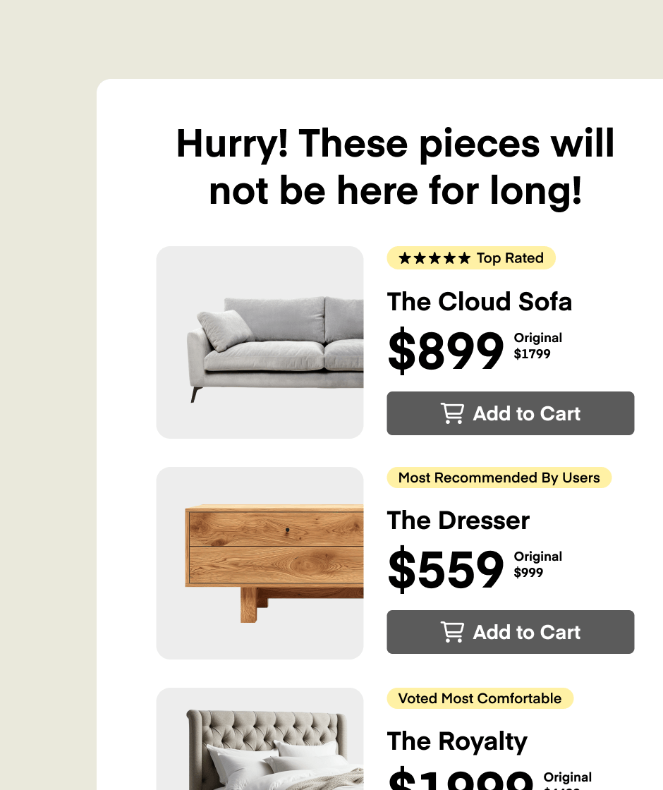 Unlock your website’s potential with upsells and cross-sells that drive revenue and boost sales while engaging your site visitors. Maximize overall customer satisfaction while improving AOV through complementary high-value items. Up-sell customers by highlighting the true value in your top-of-the-line products to encourage upgrades or add offerings like warranties or repair protection for cross-selling opportunities.