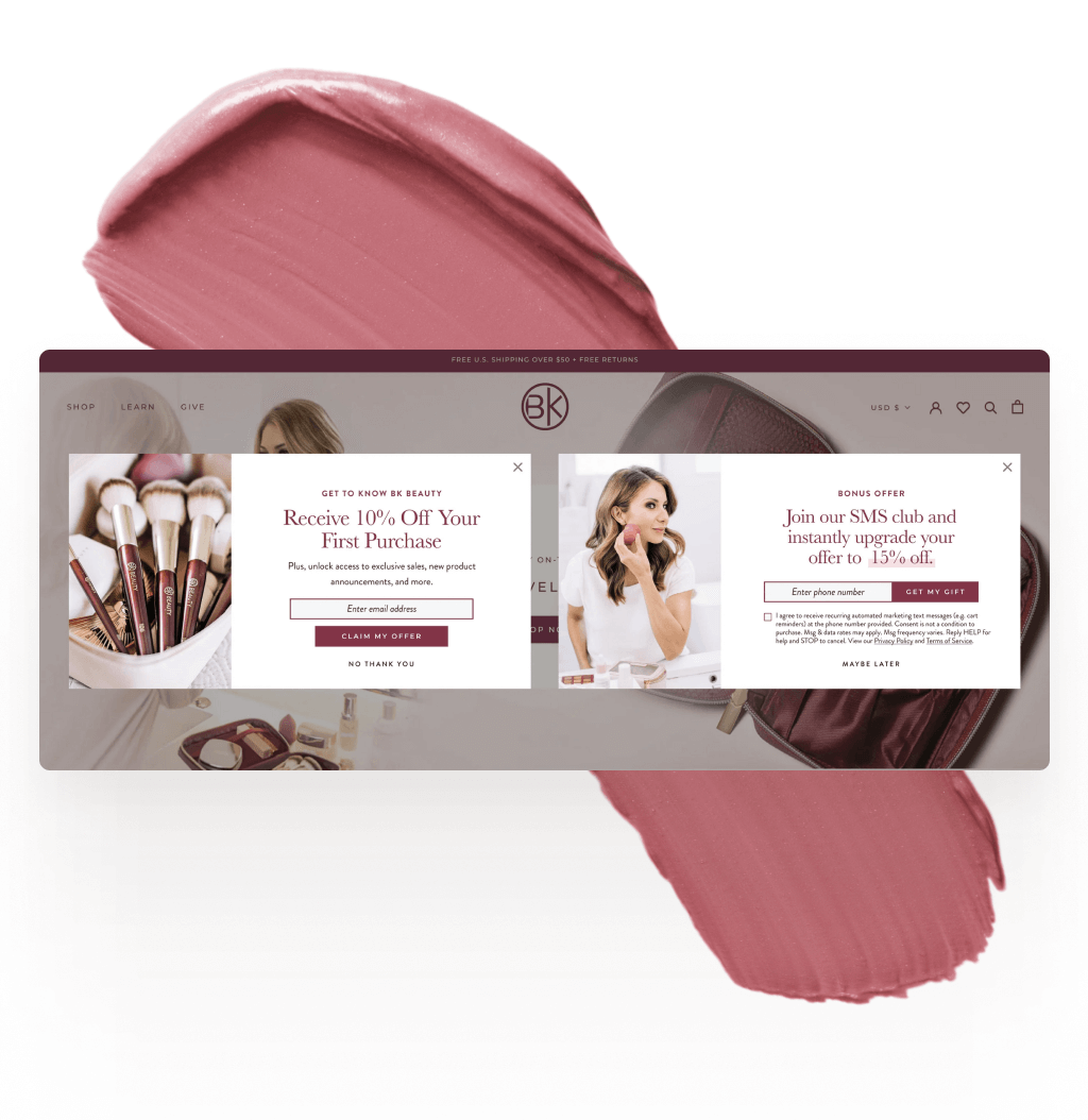 BK Beauty came to marketing agency, Fuel Made, wanting to revamp their onsite list-building and welcome email strategy. They needed a premium design and improved onsite strategy to build up email/SMS databases while simultaneously driving post-email conversion. Using Justuno in conjunction with email marketing platform Klaviyo—Fuel Made and BK Beauty were able to do just that.