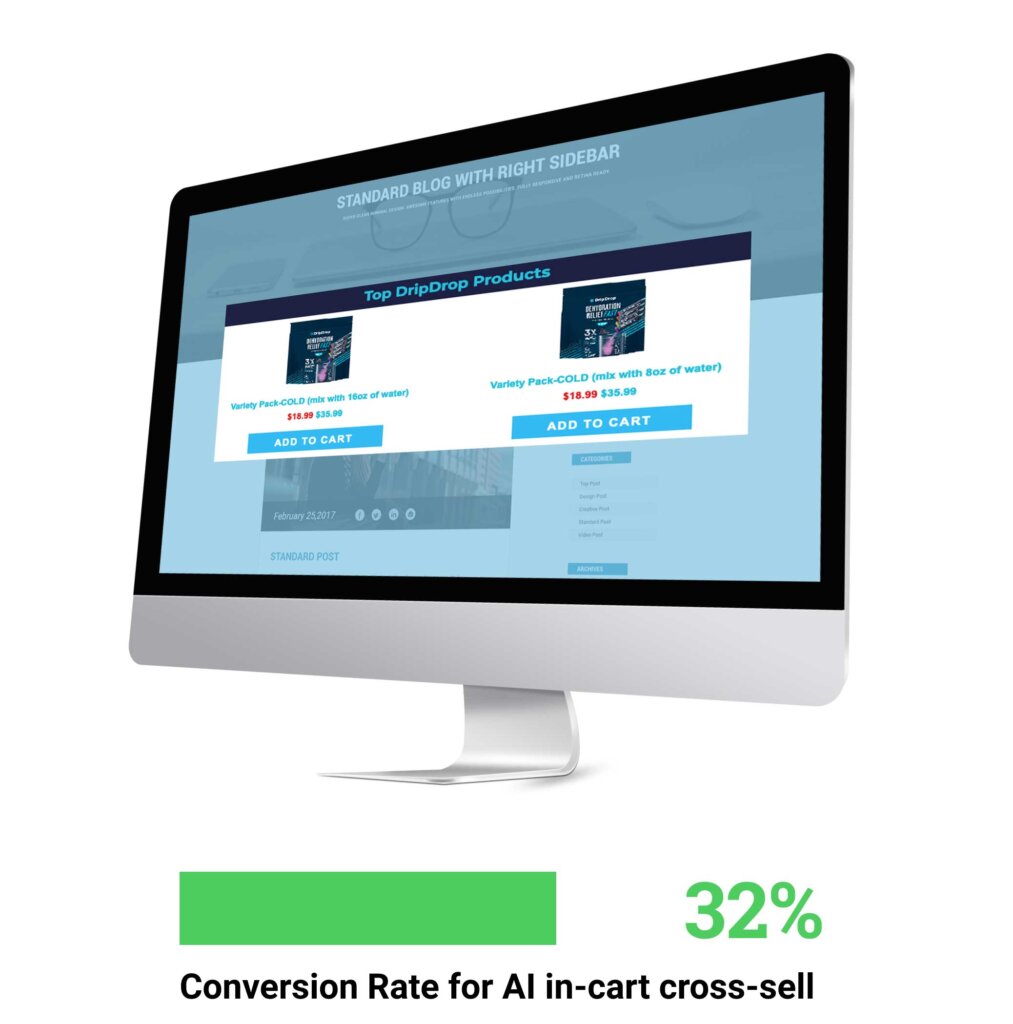 With more knowledgeable customers in place, DripDrop implemented in-cart product recommendations to drive their AOV up by 33% while maximizing product exposure across their visitors.
